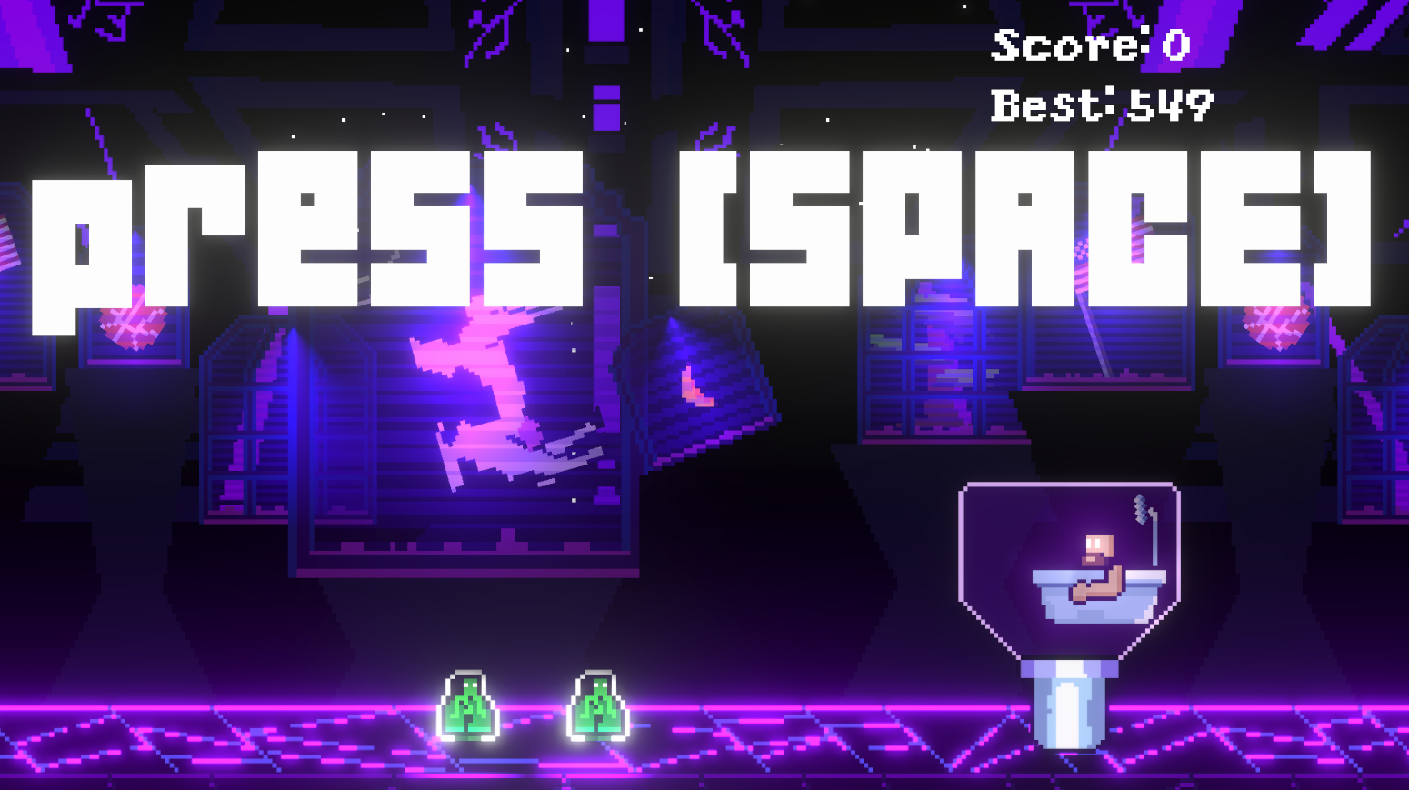 this game is a very brutal infinite runner, as you escape from the alien space station while driving your bath